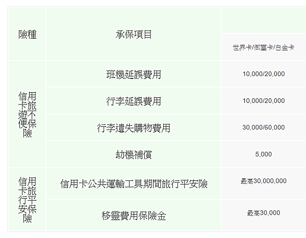 雖然機票和旅行社本身就含有保險,但其實不夠。但這張信用卡旅遊送的保障還不錯~~自己在外面加保玩多天一點保險費也不少,所以信用卡幫你省下一些錢唷!