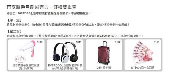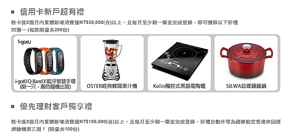 前2個月刷滿35000元的優惠,注意:這裡每項贈品限量200份