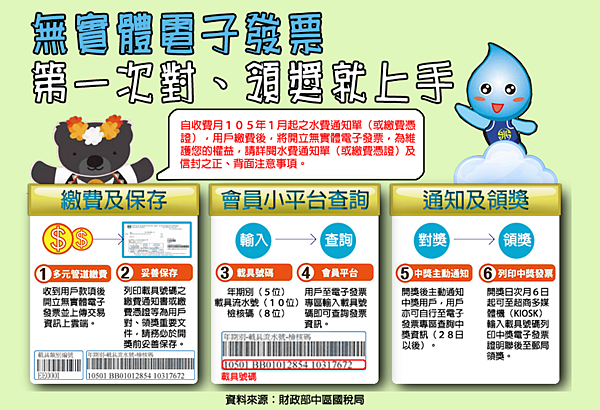 105/1/1 公共事業導入電子發票,如水費、電費、瓦斯費、電信費等.都將開立無實體電子發票,如有中獎公共事業也會主動通知 ![]()